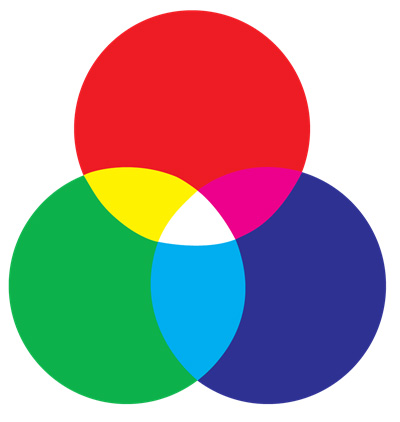 加色法是通过叠加光线得到的颜色。屏幕、手机和数字显示器使用红、绿、蓝光波长来创造所有其他颜色。