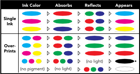 在这个系统中,白色即颜色的缺失,因为没有任何墨水或颜料的组合可以混合产生白色。白色完全来自于基础材料或基材,这也是人们常常争论白色是否算是一种颜色的原因之一。