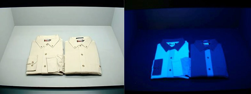 在白光日光灯和紫外灯下的衬衫