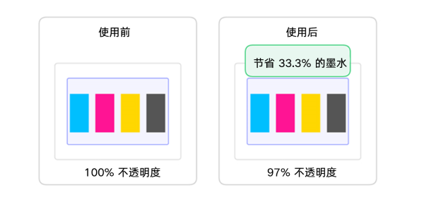 重大突破:3% 不透明度变化 = 33.3% 油墨节省